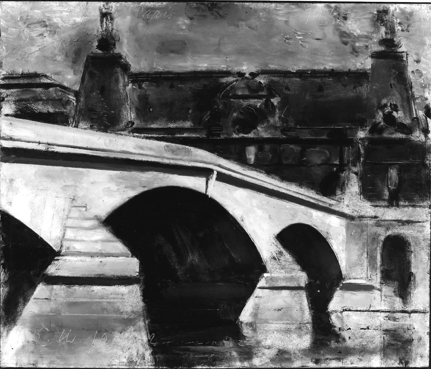 Painted in Paris, France, July 21, 22 (journal). Reminiscences of EDWIN DICKINSON, Oral History Research Office, Columbia University: 160. "The bridge was beautiful in color, and it came out well in the painting. . .The drawing involved some difficulty, and the reason I didn't paint the piece in one strike, as was intended and as I usually do, premier coup, is that I took one morning to draw the object, and one to paint it. I drew on this for about three hours, and painted for about three hours [on second day]." [see letter of July 22, 1952 to Pat on drawing & painting this].Provenance